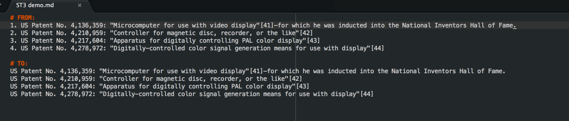 The other day I learned split selections into lines in Sublime (from my coworker Danniel Condez), and now I can do this: